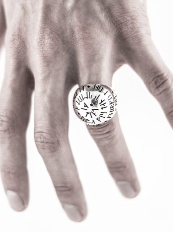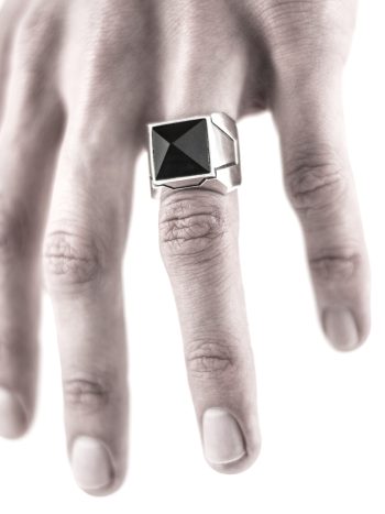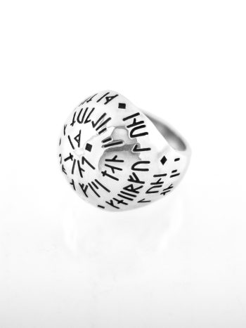 A hand-faceted dome of sterling silver. Antiqued to give the appearance of having been damaged in battle. Available in high polish or satin.